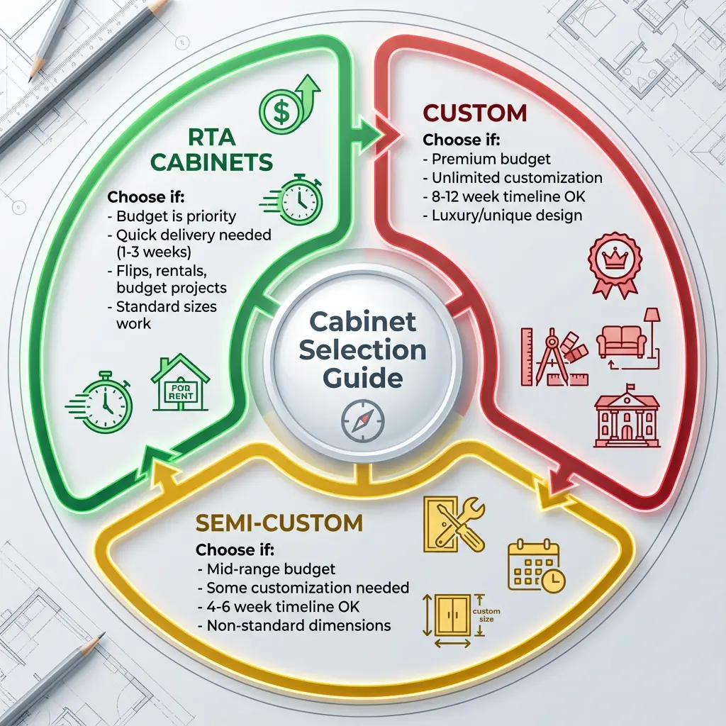 Selecting the right cabinet type—whether RTA cabinets, semi-custom cabinets, or custom cabinets—depends on a careful evaluation of project requirements, budget constraints, timeline pressures, and client expectations. Each option serves distinctly different market segments and project types, and understanding these differences helps contractors make recommendations that align with client needs while protecting profit margins.